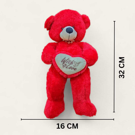 BRIGHT RED TEDDY BEAR WITH "WITH LOVE" HEART 1398