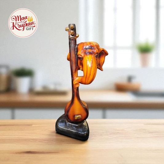 Wooden Ganesh ji with sitar 485
