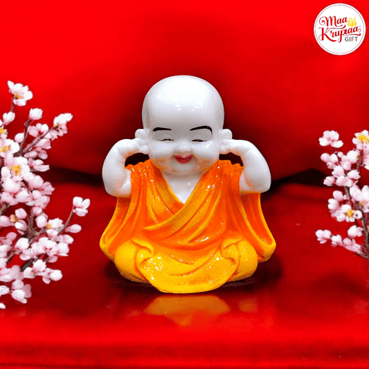 BABY BUDDHA MONK ORANGE DECORATIVE SHOWPIECE WITH PREMIUM FINISHING 1309