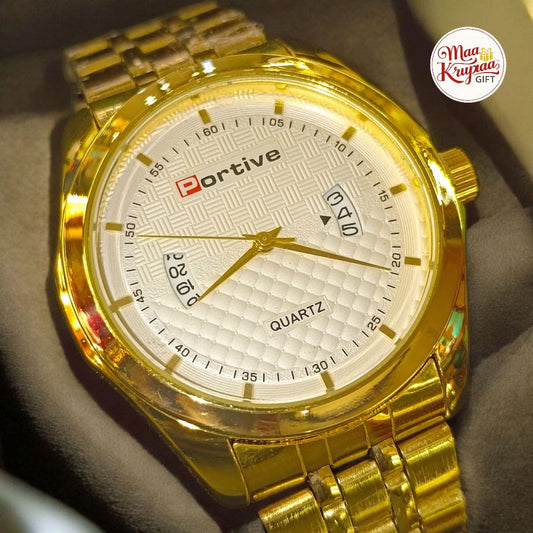 PORTIVAE MEN'S GOLD METAL HAND WRIST WATCH 428