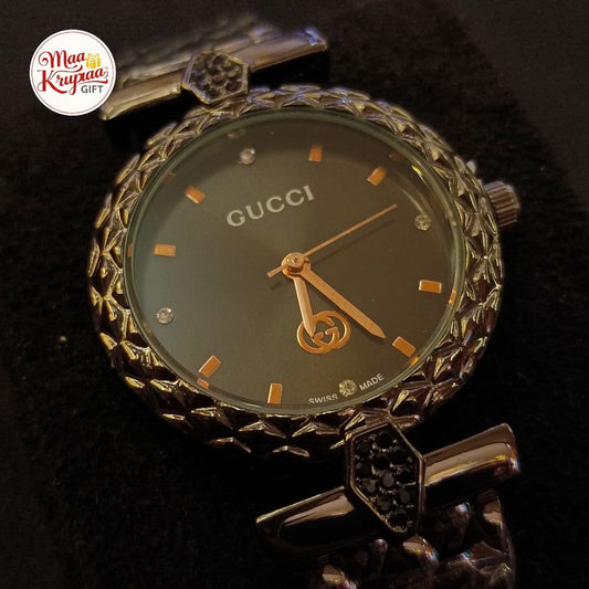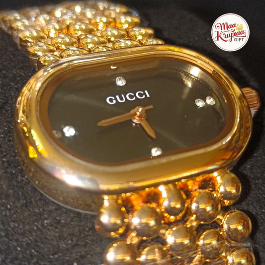 UNIQUE SHAPE BLACK COLOUR DIAL WITH GOLD COLOUR CHAIN GUCCI LADIES WATCH 687