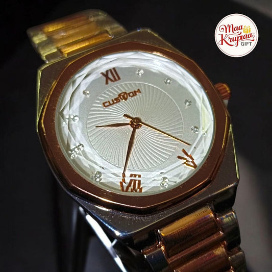 PREMIUM UNIQUE SHAPE DIAL WITH GOLD CHAIN CUSTOM LADIES WATCH 1098