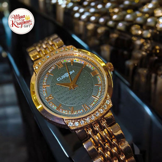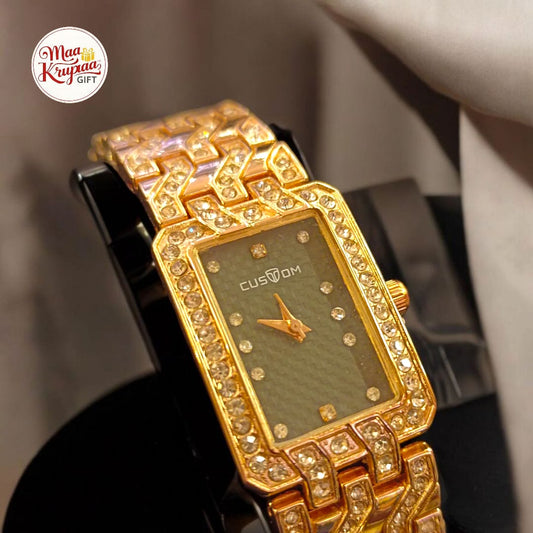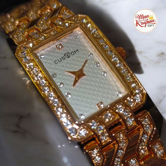 PREMIUM GOLD COLOUR DIAMOND COATING CHAIN WITH UNIQUE SHAPED DIAL CUSTOM LADIES WATCH 266