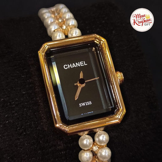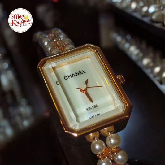 PREMIUM DIAMOND CREATED CHAIN WITH GOLD AND WHITE COLOUR DIAL CHANEL LADIES WATCH 738
