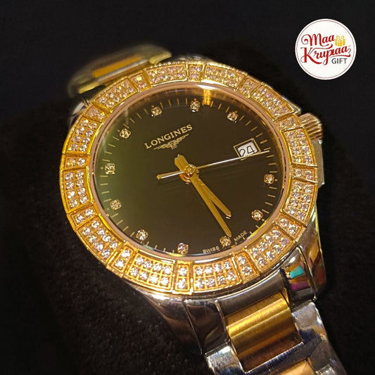 PREMIUM GOLD AND SILVER COLOUR BELT WITH DIAMOND SHADED DIAL LONGINES LADIES WATCH 685