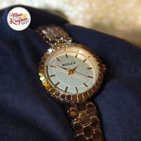 PREMIUM GOLD COLOUR CHAIN WITH WHITE COLOUR DIAL ROLEX LADIES WATCH 739