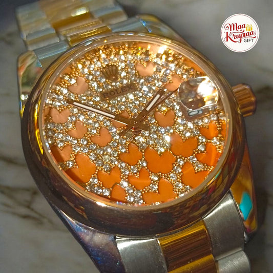 PREMIUM SILVER AND GOLD COLOUR CHAIN WITH BUTTERFLY EDITION IN DIAL WITH DATE MOTION ROLEX LADIES WATCH 683