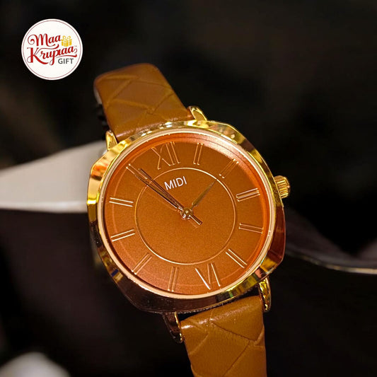 UNIQUE BROWN COLOUR BELT WITH GOLDEN AND BROWN DIAL MIDI LADIES WATCH 435