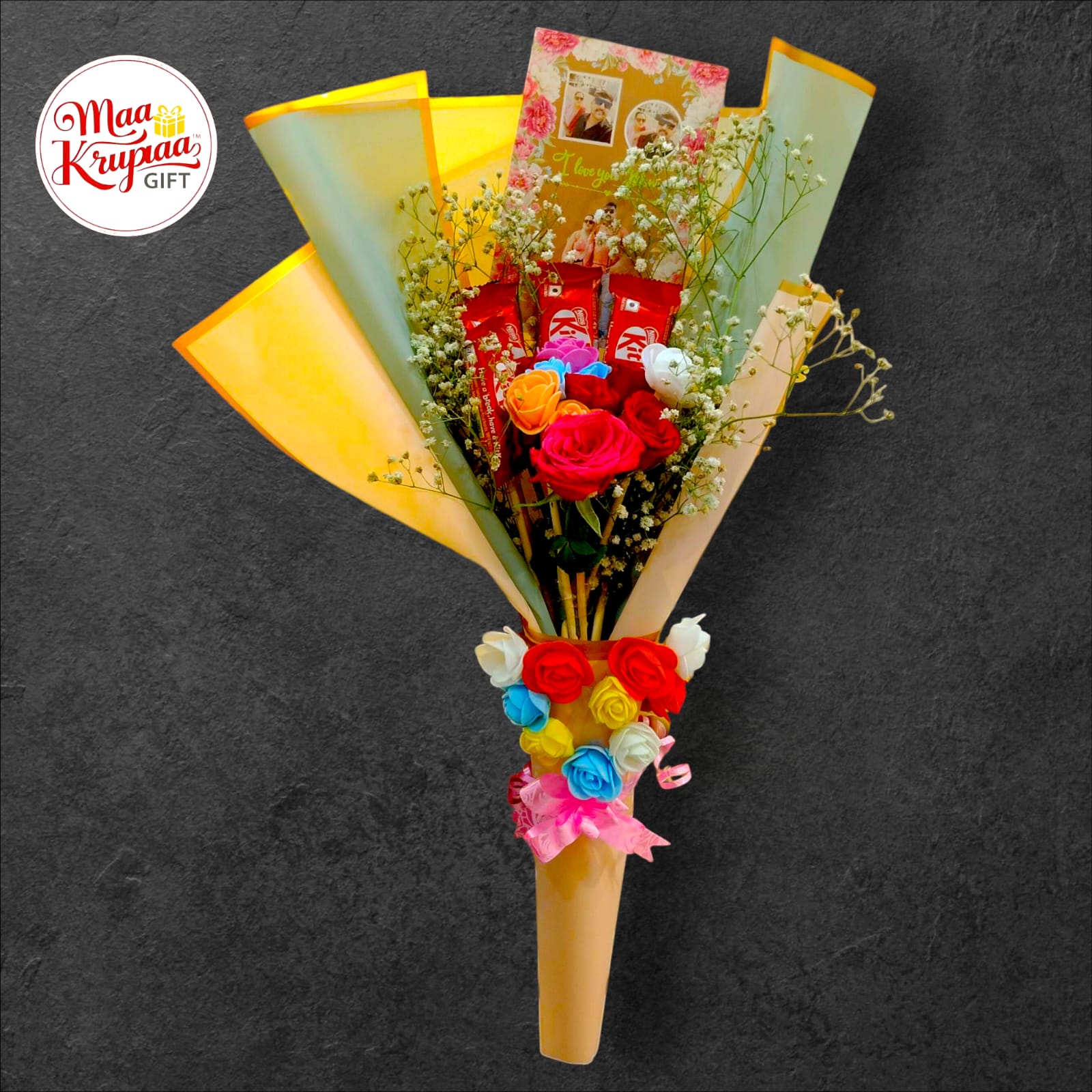 CUSTAMIZE CHOCOLATE, FLOWER BOUQUET WITH PERSONALIZED PHOTO CARD