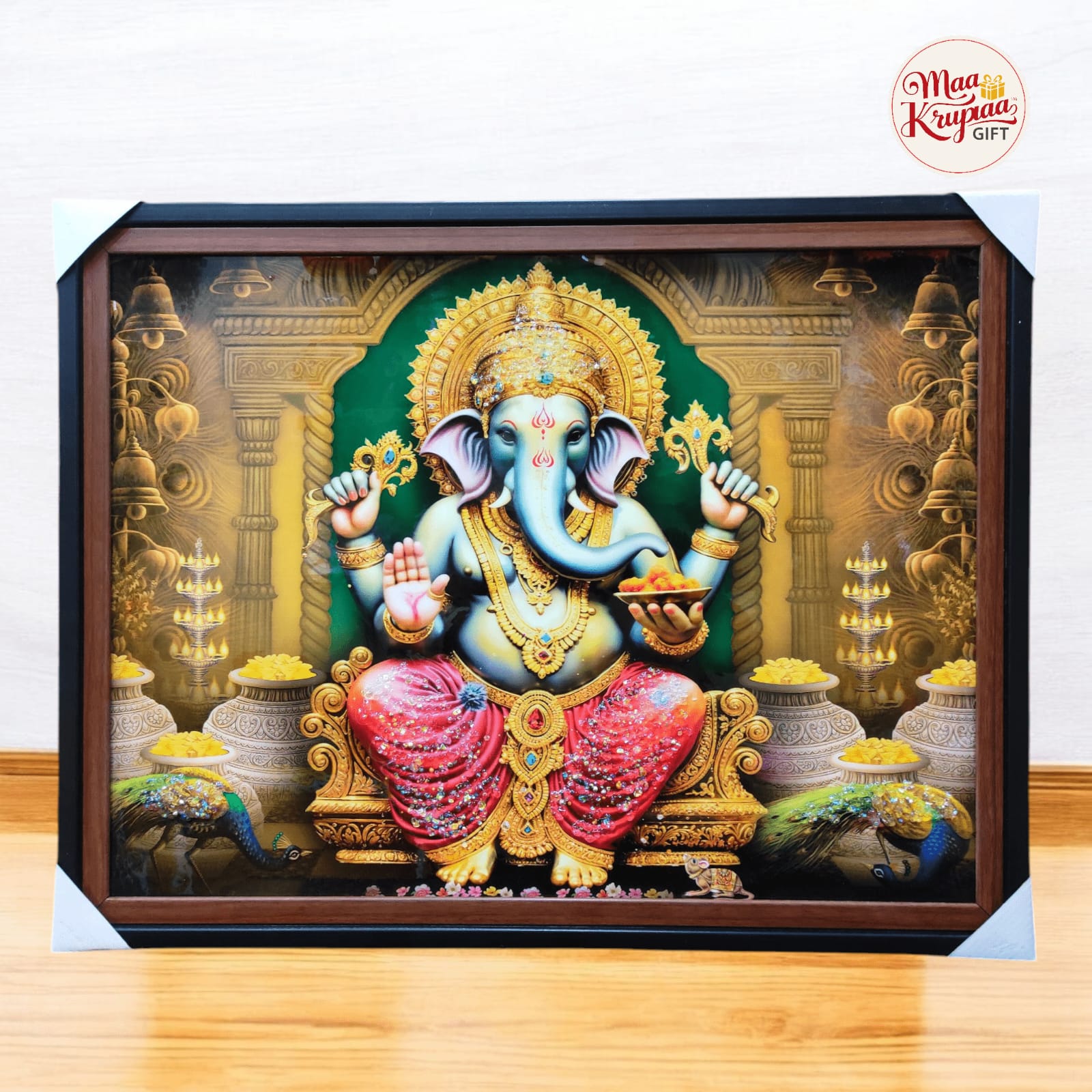 LORD GANESHA ROYAL SEATED BIG SIZE PREMIUM HOME DECOR WALL FRAME 816