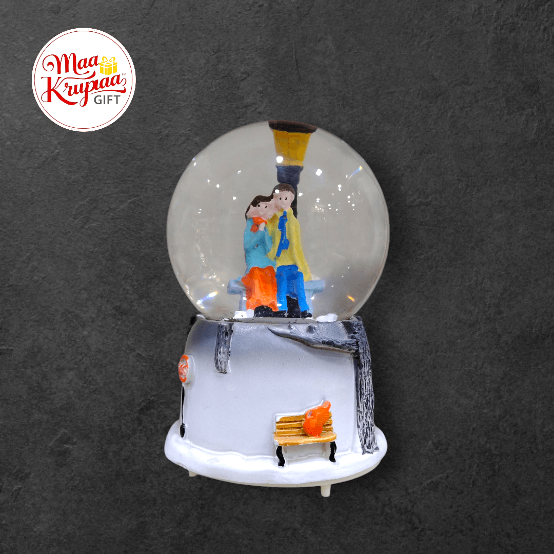 LOVE GLASS COUPLE SHOWPIECE SITTING ON BENCH WITH LIGHT AND MUSIC L6