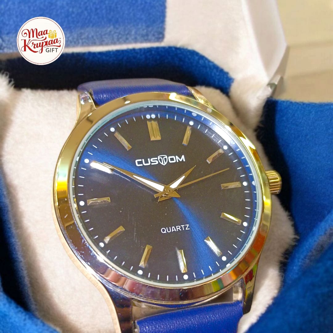 Sleek, radiant, and undeniably elegant — the Custom Sapphire Luxe is crafted for those who appreciate refined style with a modern twist. Featuring a stunning deep blue sunray dial framed in a polished gold-tone case and paired with a matching blue strap, this watch blends luxury and versatility. Ideal for formal occasions and everyday sophistication, it’s a statement of class on your wrist.