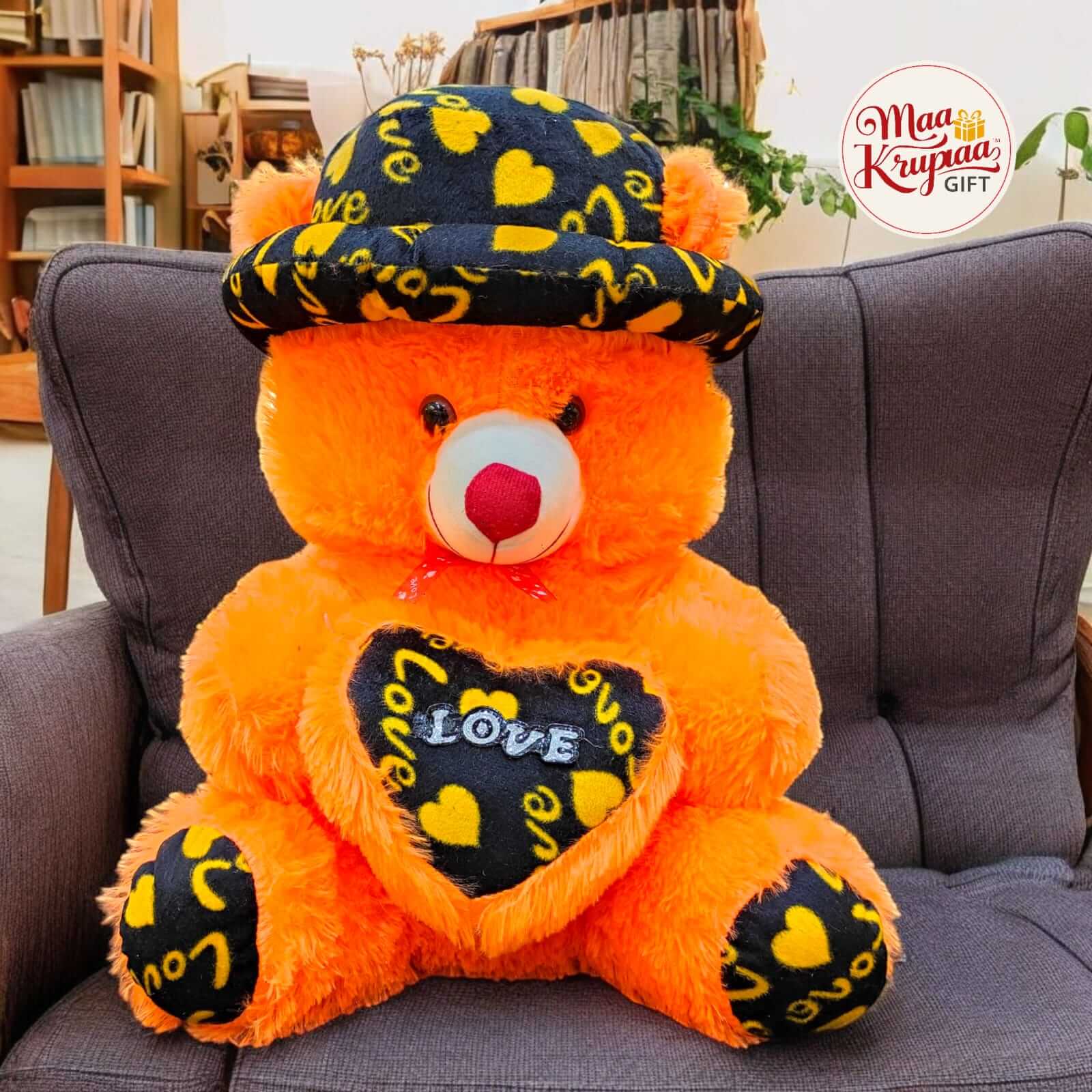 ORANGE TEDDY BEAR WITH LOVE-THEMED HAT AND HEART 1397