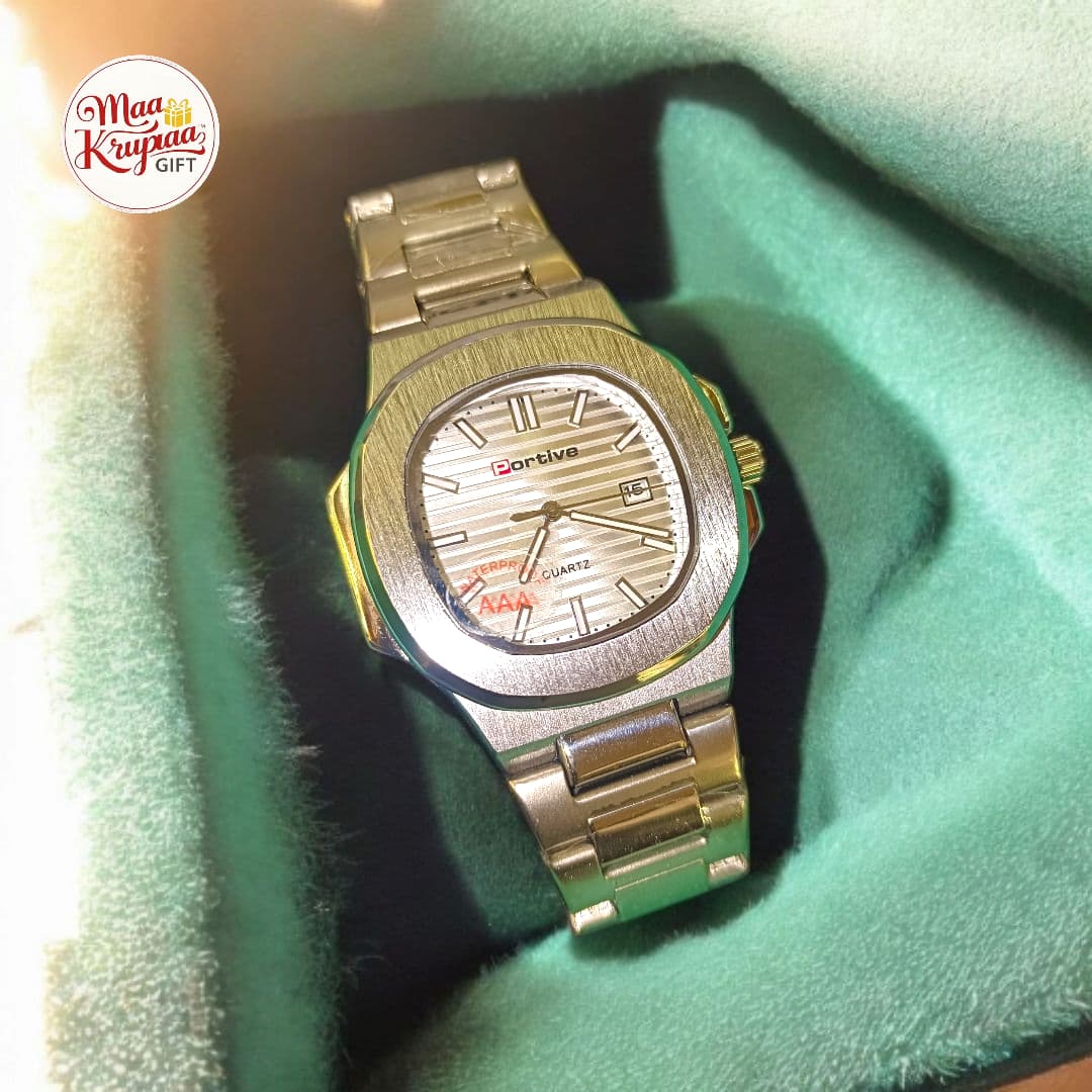 PORTIVAE MEN'S SILVER DIAL STAINLESS STEEL WATCH 428
