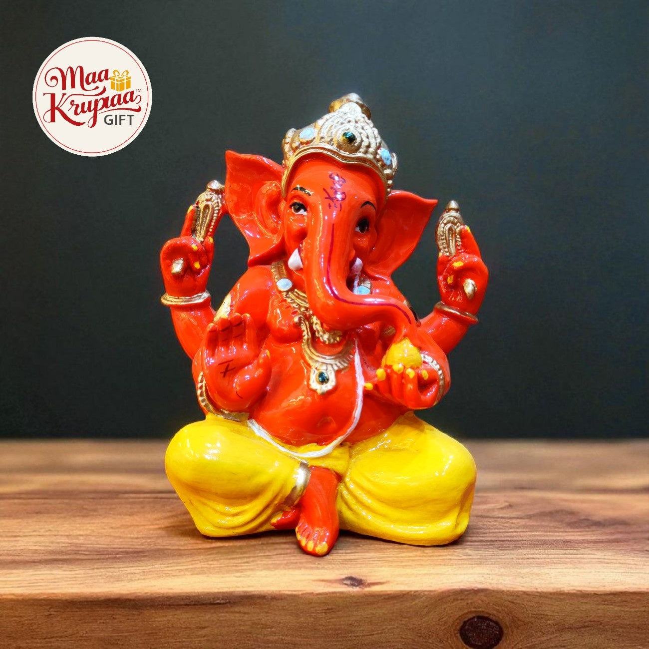 SHREE GANESHA RED AND YELLOW FOUR-ARMED DECORATIVE IDOL W104